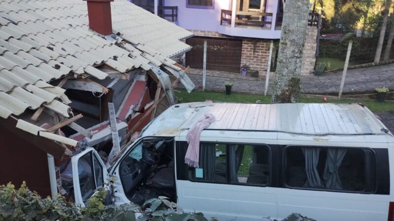 Van invade terreno, atinge carro e derruba parede de residência em Caxias do Sul