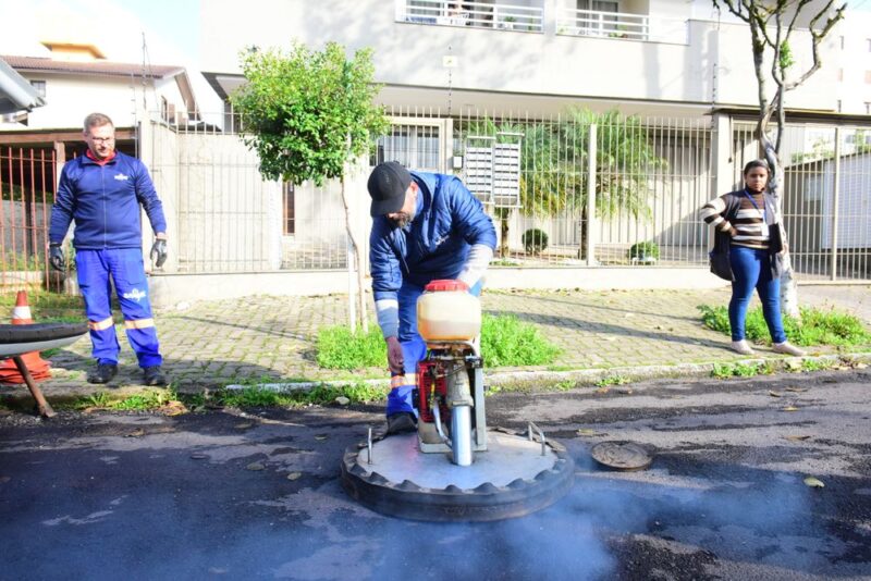 Técnica de termonebulização ajuda a encontrar irregularidades no esgoto no bairro Santa Lúcia, em Caxias