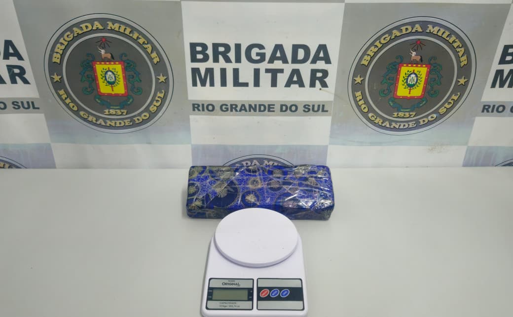 Conforme o 12º BPM, na ação, foi localizada e apreendida um tijolo de maconha pesando aproximadamente 700 gramas e uma balança de precisão.