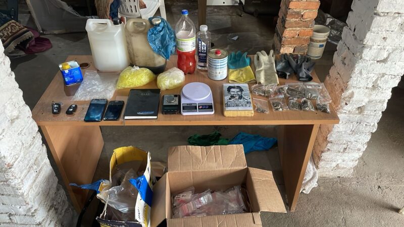 Durante o cumprimento de mandados de busca e apreensão, autorizados pela Justiça, os policiais encontraram um laboratório de drogas no centro da cidade. No local, foram apreendidos 1,07 quilo de cocaína, 133 gramas de maconha, duas balanças de precisão, dinheiro trocado, anotações da traficância e uma grande quantidade de materiais para embalar entorpecentes, como pinos, lacres e sacos plásticos. Também foram recolhidos três celulares e dois veículos, uma BMW e um Kadett, citados na investigação.